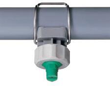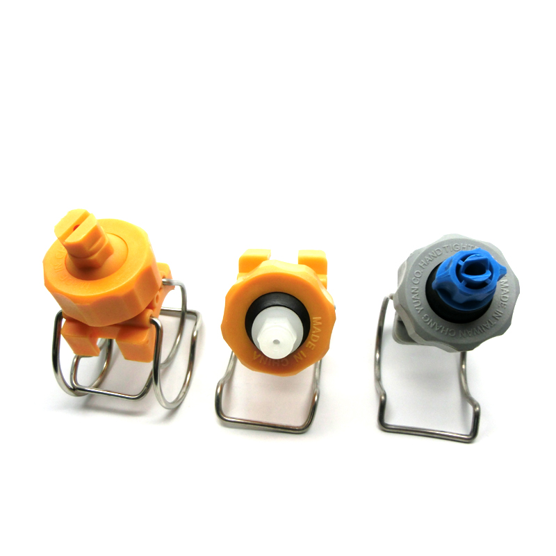 根據(jù)扇形噴嘴的螺紋規(guī)格,把噴嘴與底座連接好,在水管上開(kāi)個(gè)小孔,選擇卡扣的內(nèi)徑與水管一致,直接用手把彈簧卡扣在水管上,水管與噴嘴底座之間用密封圈密封,不會(huì)滲漏。