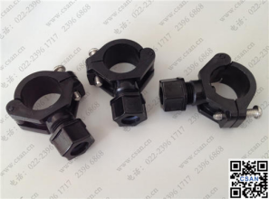 該型底座有兩個(gè)弧形片,套在水管上,通過(guò)螺栓連接在一起。