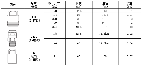 • BBF標(biāo)準(zhǔn)角方形實(shí)心錐噴嘴的噴霧形狀呈實(shí)心錐形,噴射區(qū)域呈方形。