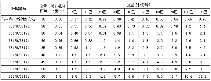 • 38170型噴嘴主體為黃銅材質(zhì),過(guò)濾網(wǎng)為不銹鋼材質(zhì),噴孔為陶嵌體。
