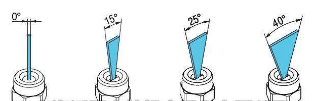①指噴流角度 扇形噴嘴噴霧展開的角度(標準是在3巴壓力下)
