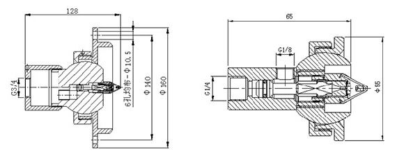 1、法蘭安裝式 萬向球安裝底座通過法蘭安裝在應(yīng)用場(chǎng)合,噴嘴通過萬向球可以在一定范圍內(nèi)(50°)調(diào)節(jié)噴嘴方向。底座內(nèi)可以安裝加熱棒,防止寒冷環(huán)境下水源結(jié)冰。