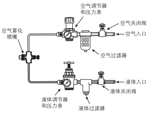 • 通過調(diào)節(jié)噴霧裝置內(nèi)的氣體壓力與液體壓力來實(shí)現(xiàn)霧化。