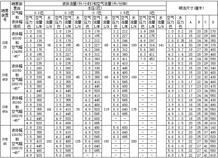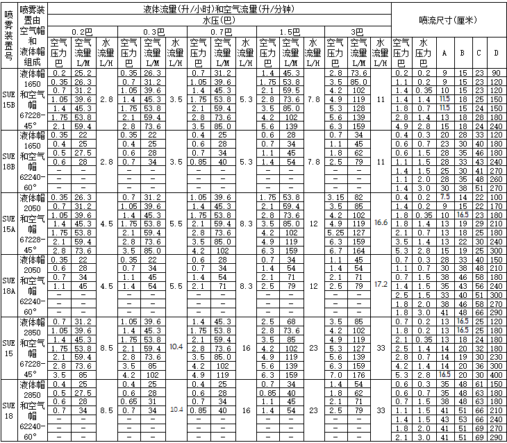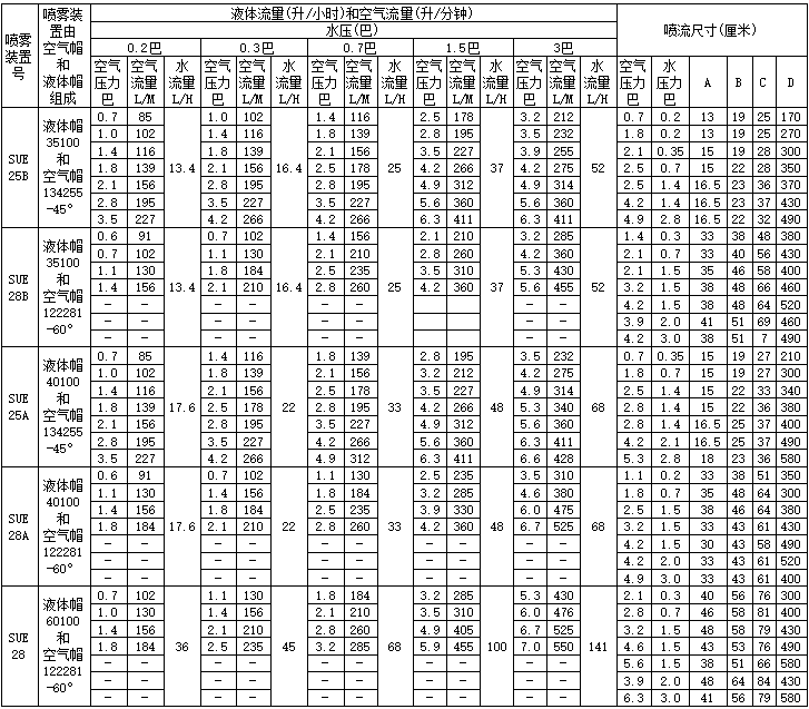 扇形噴霧(外部混合)續(xù)表