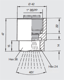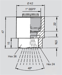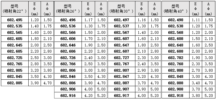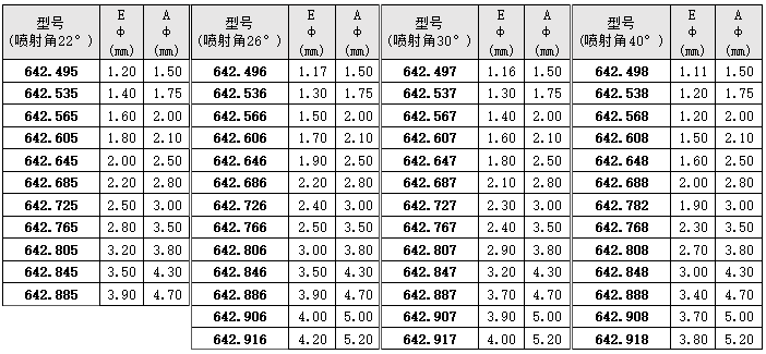• 噴射角度:22°,26°,30°,34°,40°。