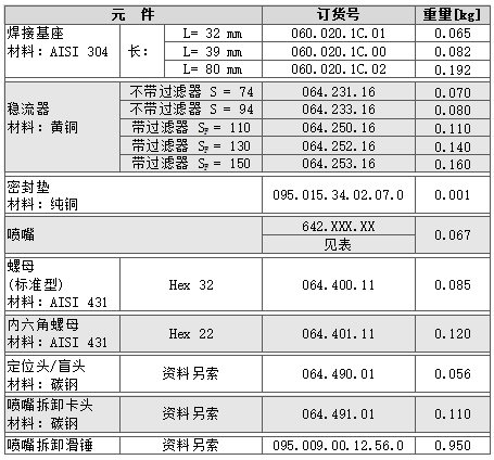 1)僅適用于內六角螺母的迷你型除鱗噴嘴;2)僅適用于迷你型除鱗噴嘴;3)適用于內六角螺母的標準型除鱗噴嘴