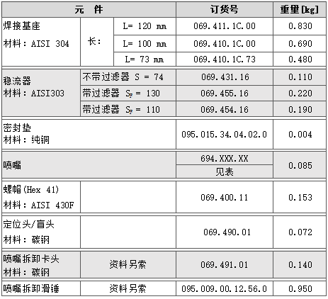 • 流量和噴射角由噴頭決定,兩個系列可供相同流量和噴射角的噴嘴。