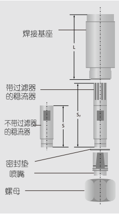 特殊內六角螺母,適用于噴嘴之間非常窄的距離。