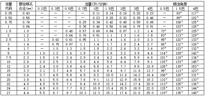 • 廣角扁平扇形的噴霧形狀。分布均勻,打擊力中等。
