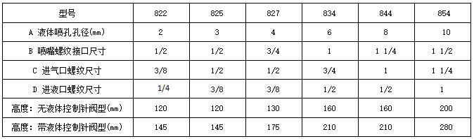 型號(hào)854(不帶液體控制針型)液滴大小,孔徑10.0mm,